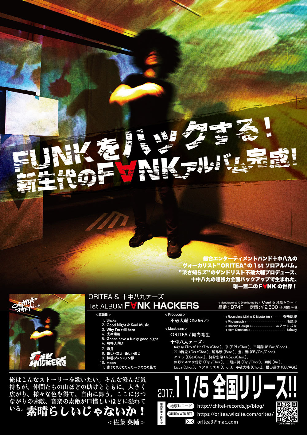 2017.11/19(日) ORITEA & 十中八九ァーズ 1stアルバム『FANK HACKERS』全国リリース!!!【CD】